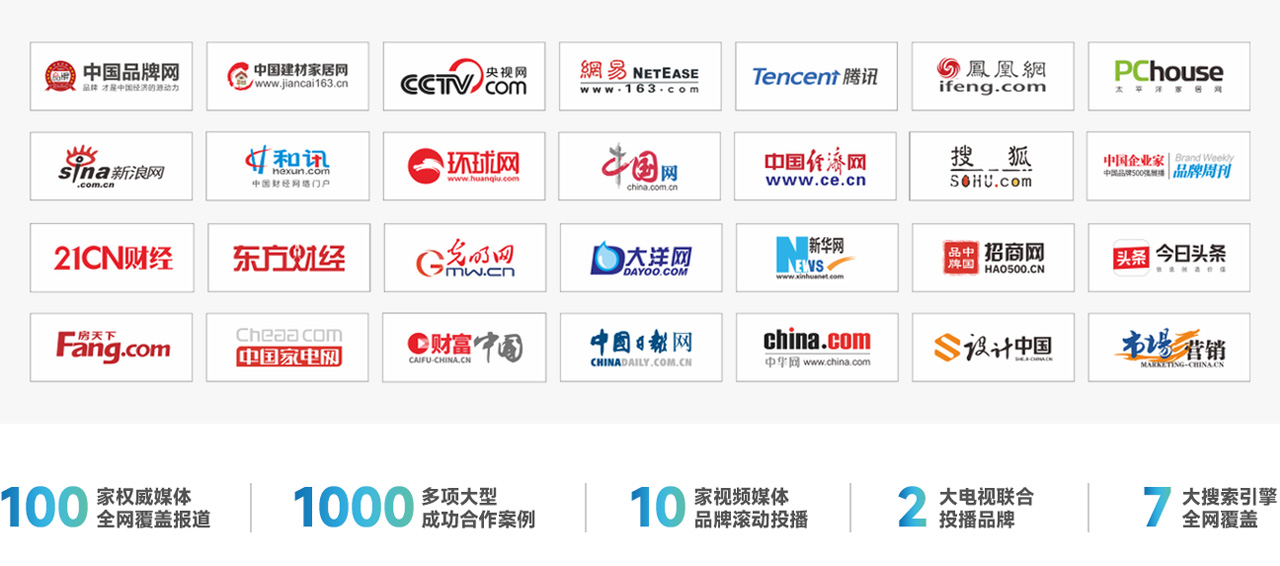2兩大電視頻道投播 · 7大搜索引擎全面覆蓋 · 10多家視頻媒體展播 · 百家權(quán)威媒體全年報(bào)道關(guān)于愉升